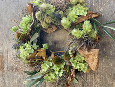 auf einen Strohreif unsere diversen haltbaren Schätze von Mutter Natur zu einem unvergänglichen Tür oder Wandschmuck ( 25-30 cm Durchmesser)